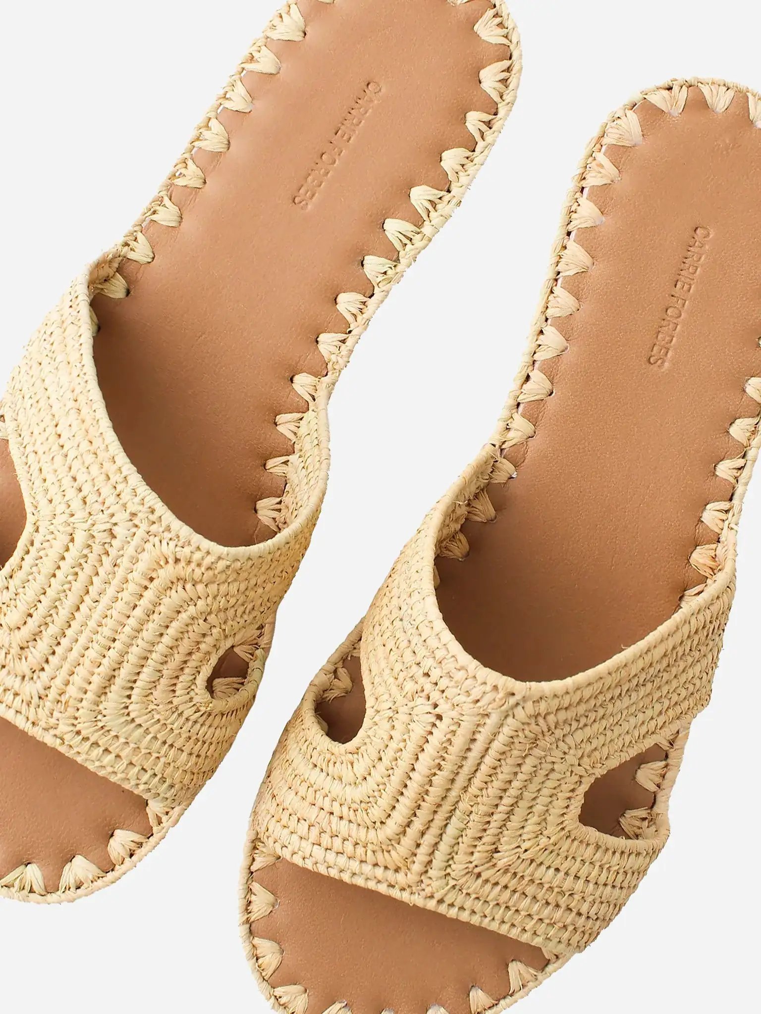 The Carrie Forbes Cuadro Natural Raffia Sandal is the perfect addition to your resort wear shoe rotation.