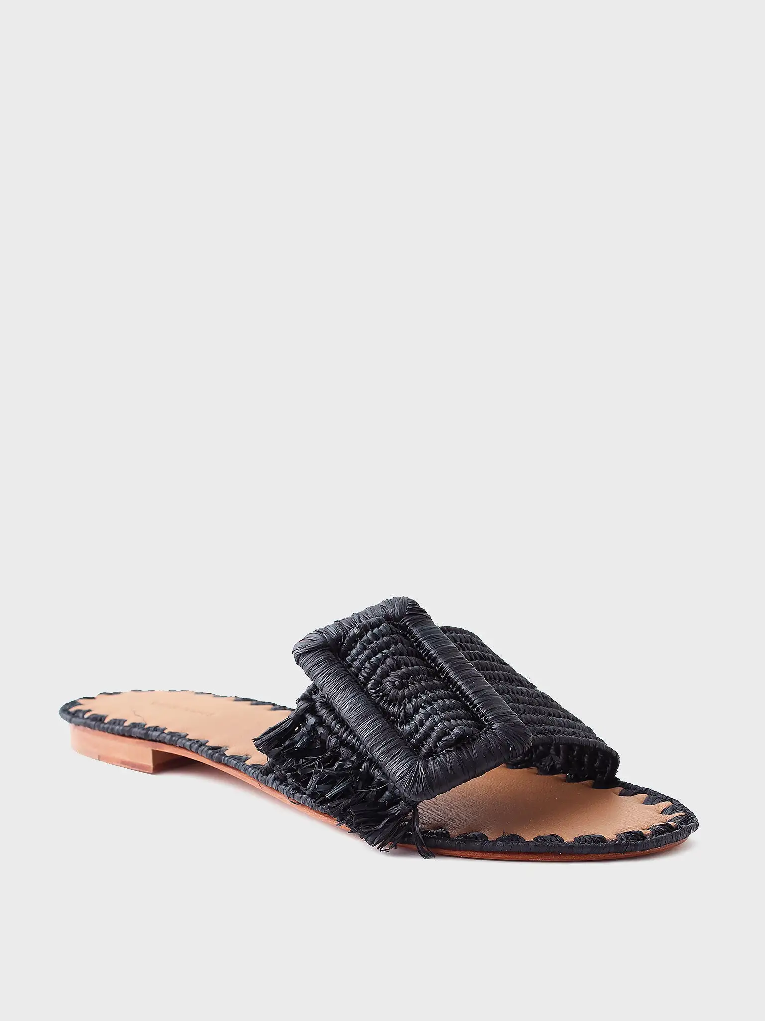 The Carrie Forbes Kia Natural Raffia Buckle Slide Sandals add texture and island vibes to your summer look.