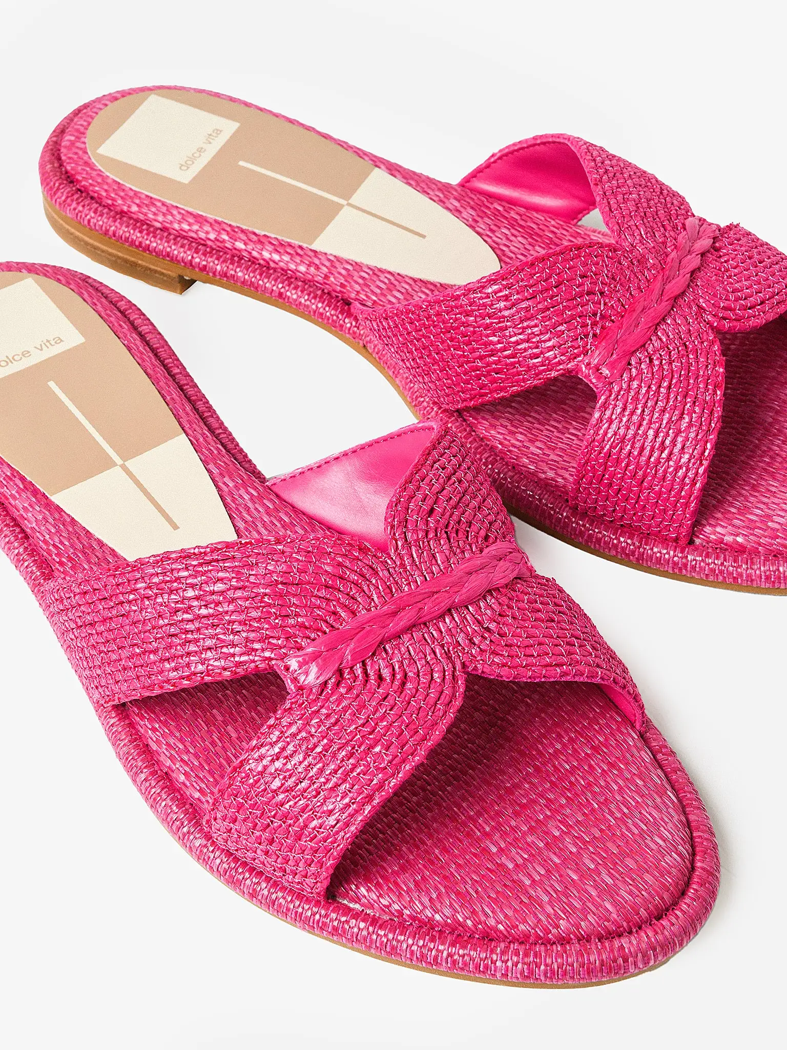 Flat raffia sandal with a wide cutout strap.