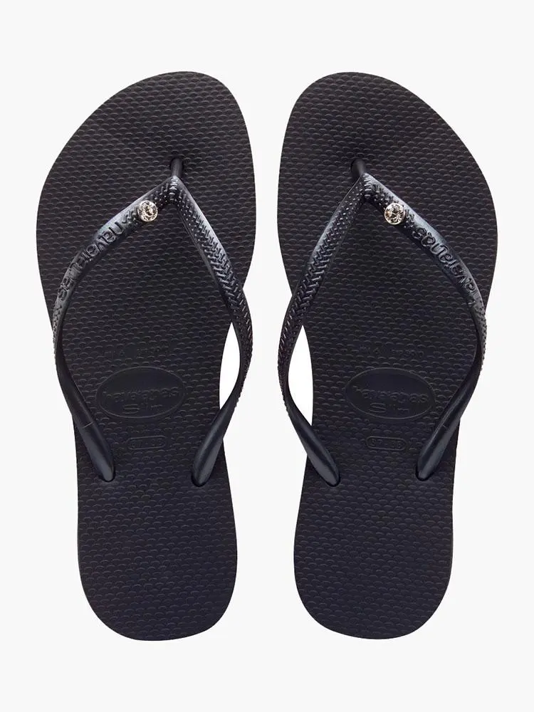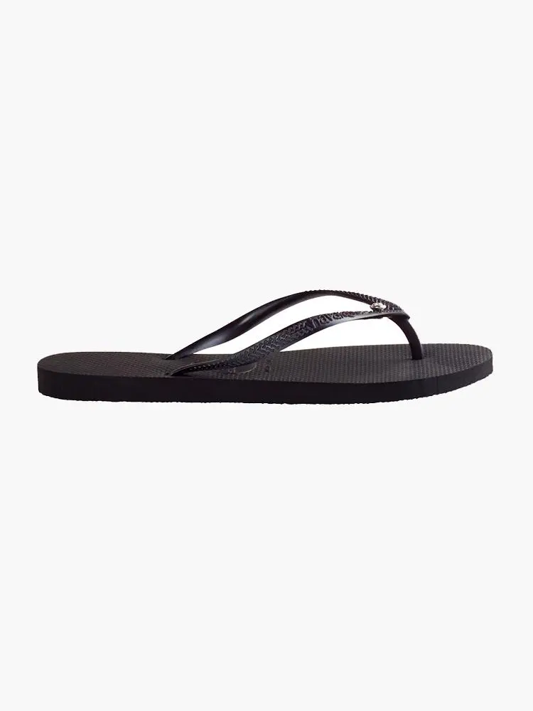 The Slim Crystal Glamour SW features a sparkling Swarovski Elementspin embellishment on a slim metallic strap for eye-catching appeal. Atonal Havaianas logo and our signature textured footbed provide styleand comfort.