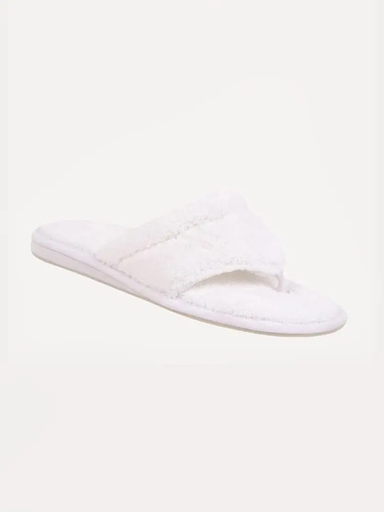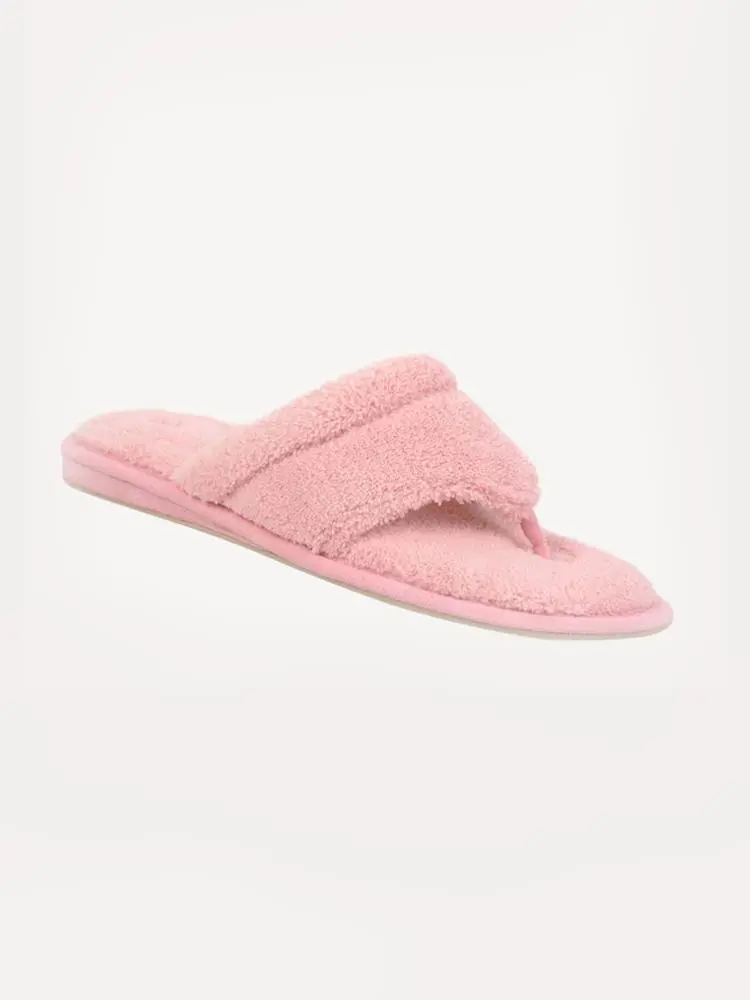 Lounge in style with an extra plush thong slipper grounded with a cushy foot bed and flexible rubber sole.