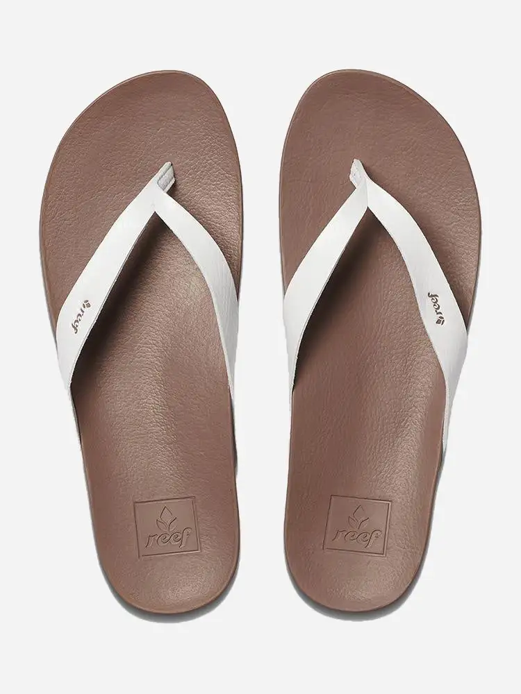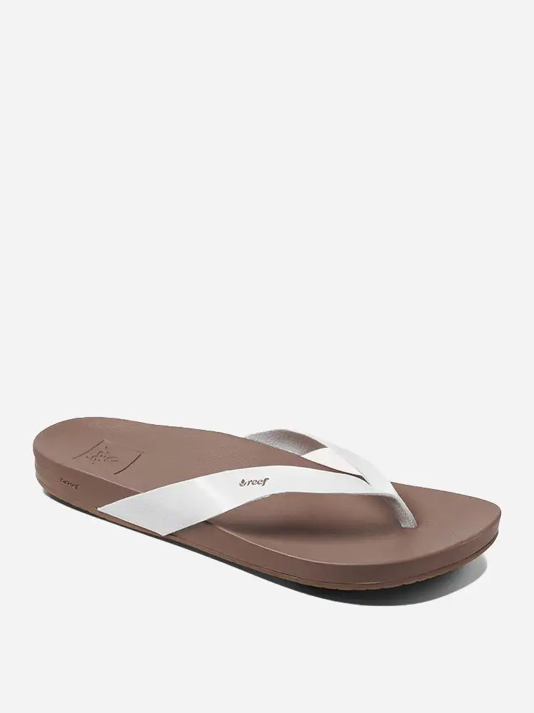 The jury is out whether there is a more comfortable sandal than the Cushion Bounce Court. Including Reef signature Cushion Bounce foam with high energy memory free rebound, anatomical contouring, arch support and a refined tapered, metallic vegan leather strap.
