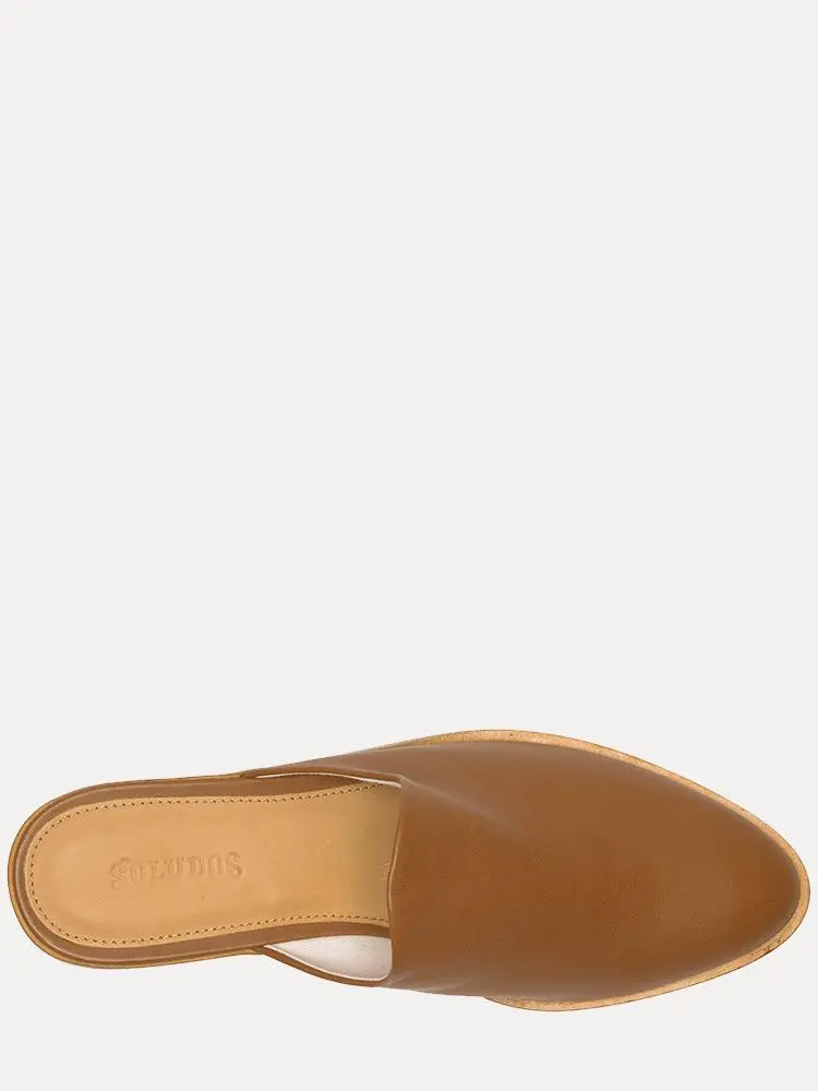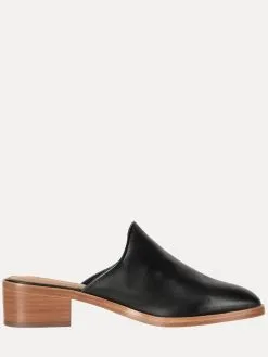 The ultimate transitional shoe, the mule, with an artful topline (our designer looked at the wave graphic on our shoeboxes and mirrored it in the upper). Bonus: The stacked heel makes it supremely walkable.