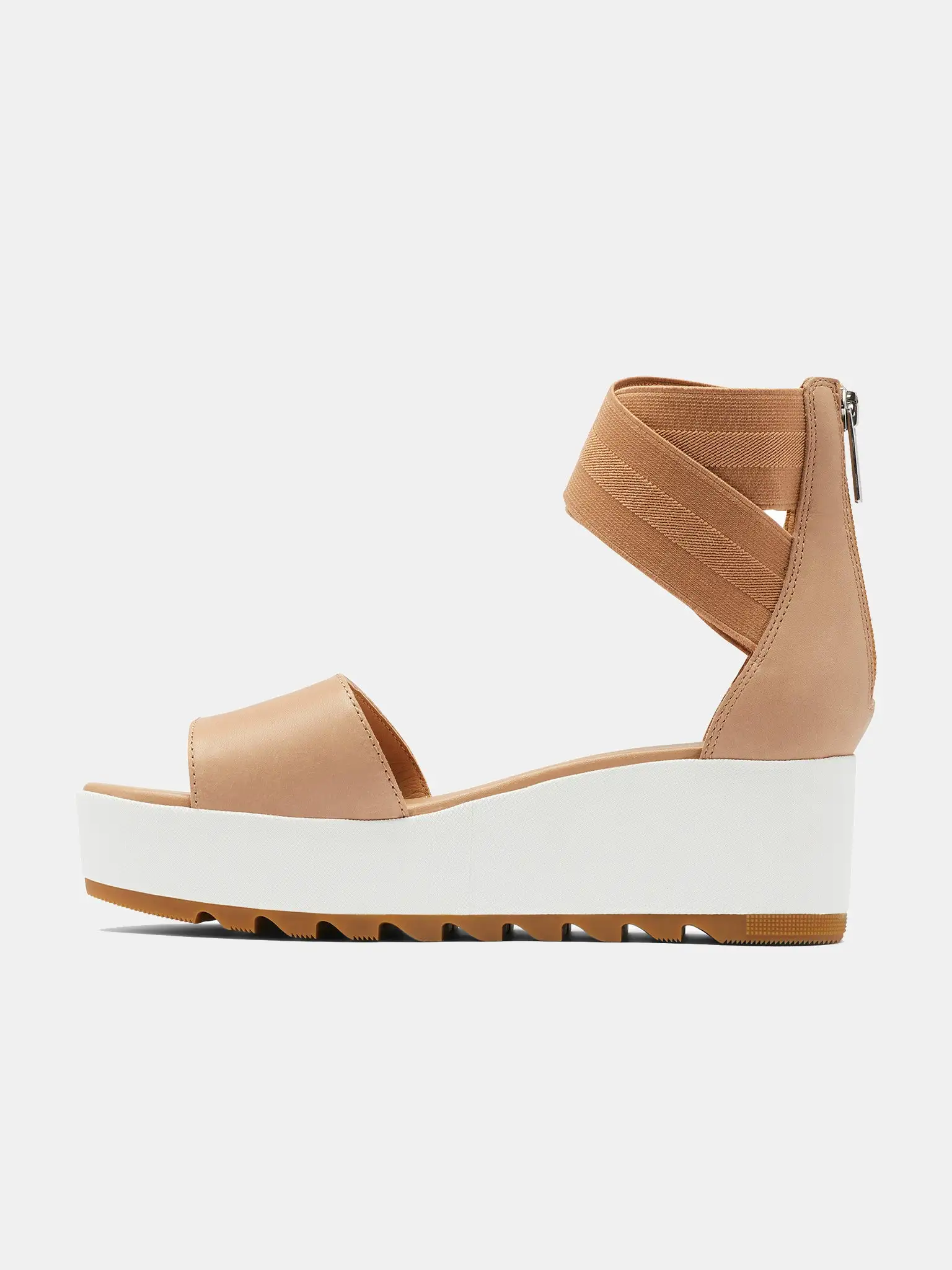 Take your look to new heights this season with the 1 1/2 inch platform Sorel Women’s Cameron Flatform Ankle Strap Sandal.