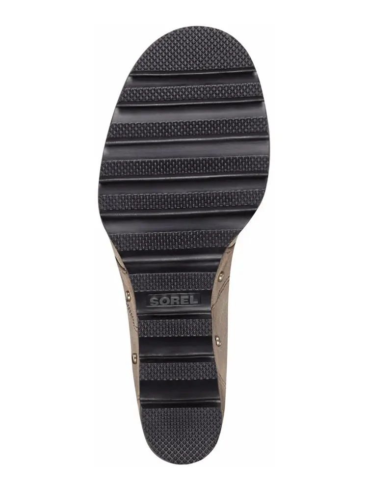 The Sorel Joan Of Arctic Wedge Mid Boot in Dark Fog is a chic city boot with Soft, waterproof, full-grain leather upper features burnished touches at toe and heel for extra edge