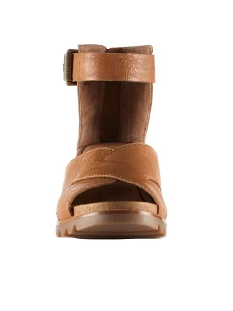 The Sorel Joanie Sandal II features a wedge heel that is easy to walk in from cement to cobblestone.