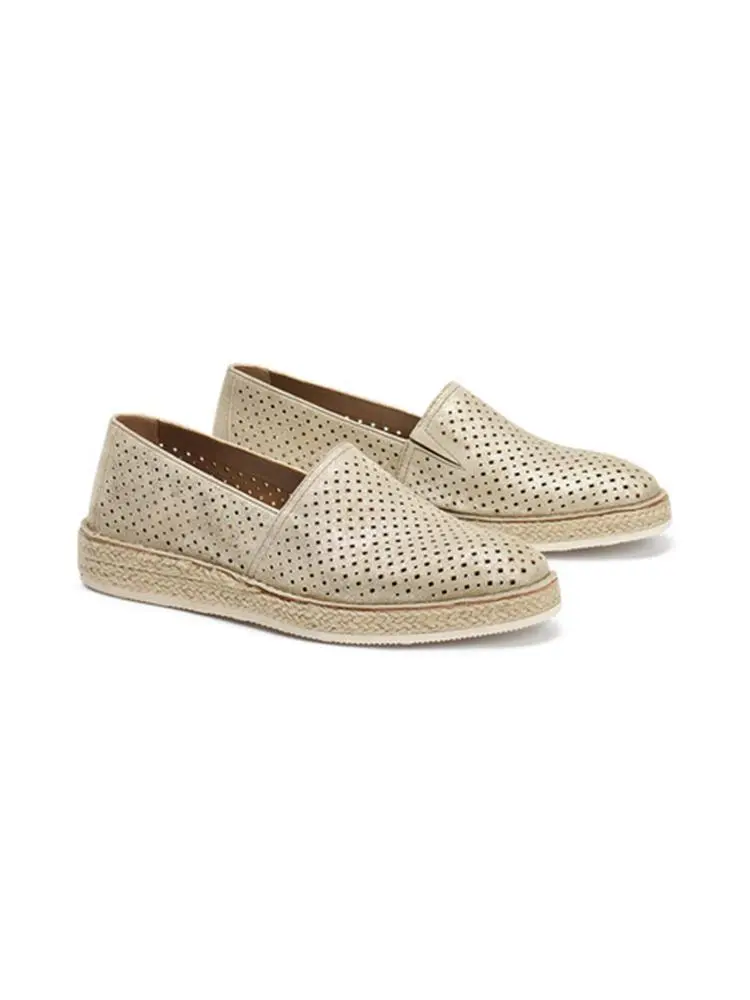 The jute-wrapped espadrille slip-on re-imagined, in dusty Italian metallic suede with a lacy perforated pattern and soft vintage shimmer. Extra cushioning further enhances the modern sensibility.Â