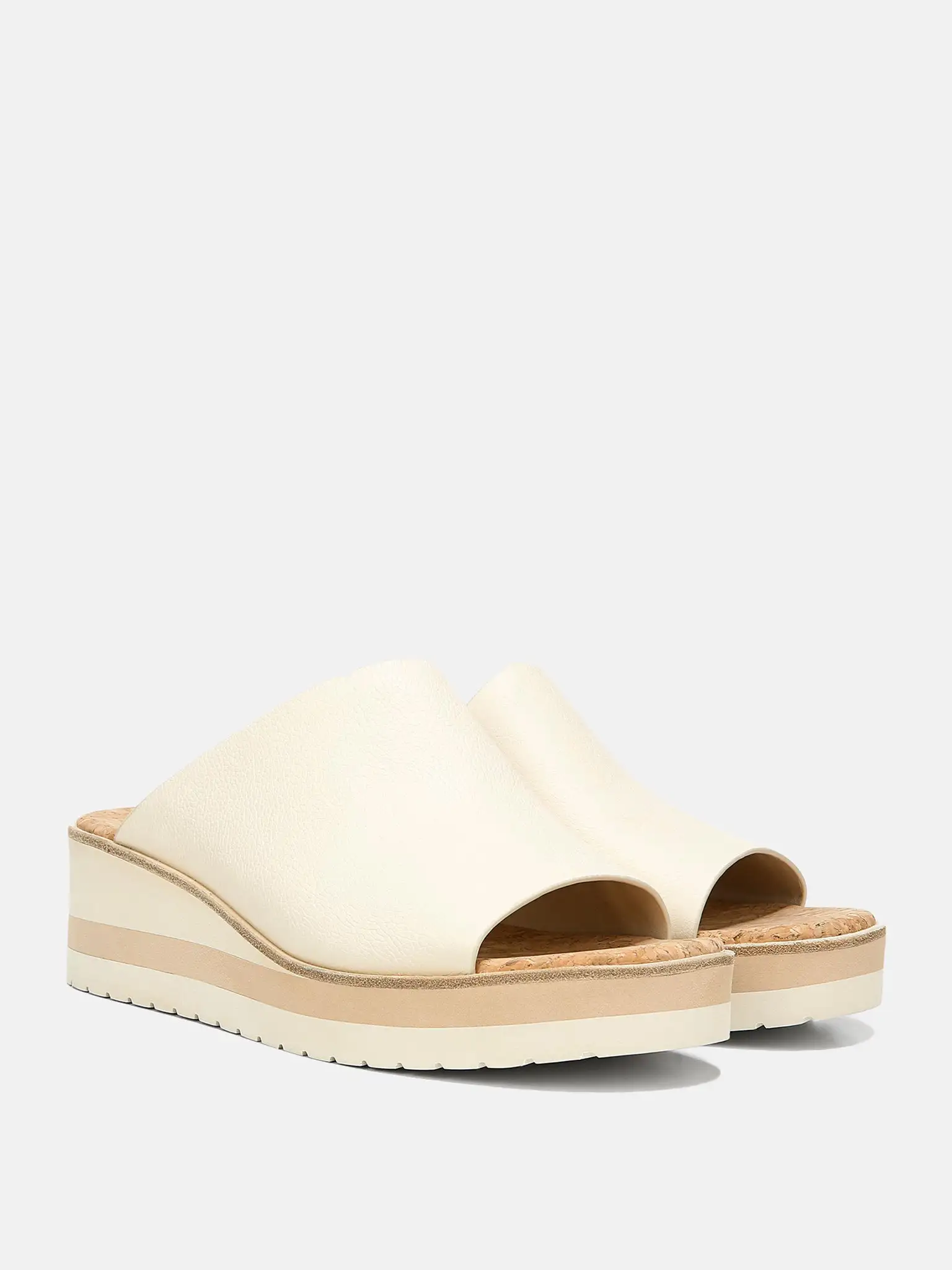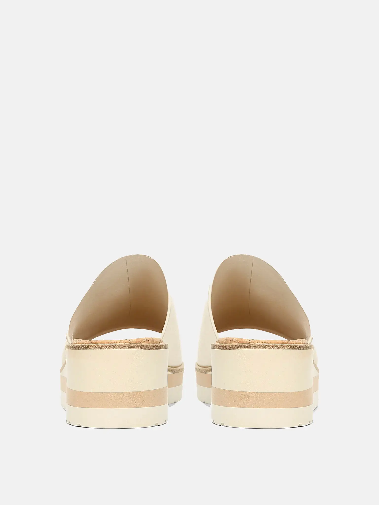 Effortless wedge mules with a peep-toe. Crafted with a leather upper and cork insole, they feature a bi-color rubber midsole.