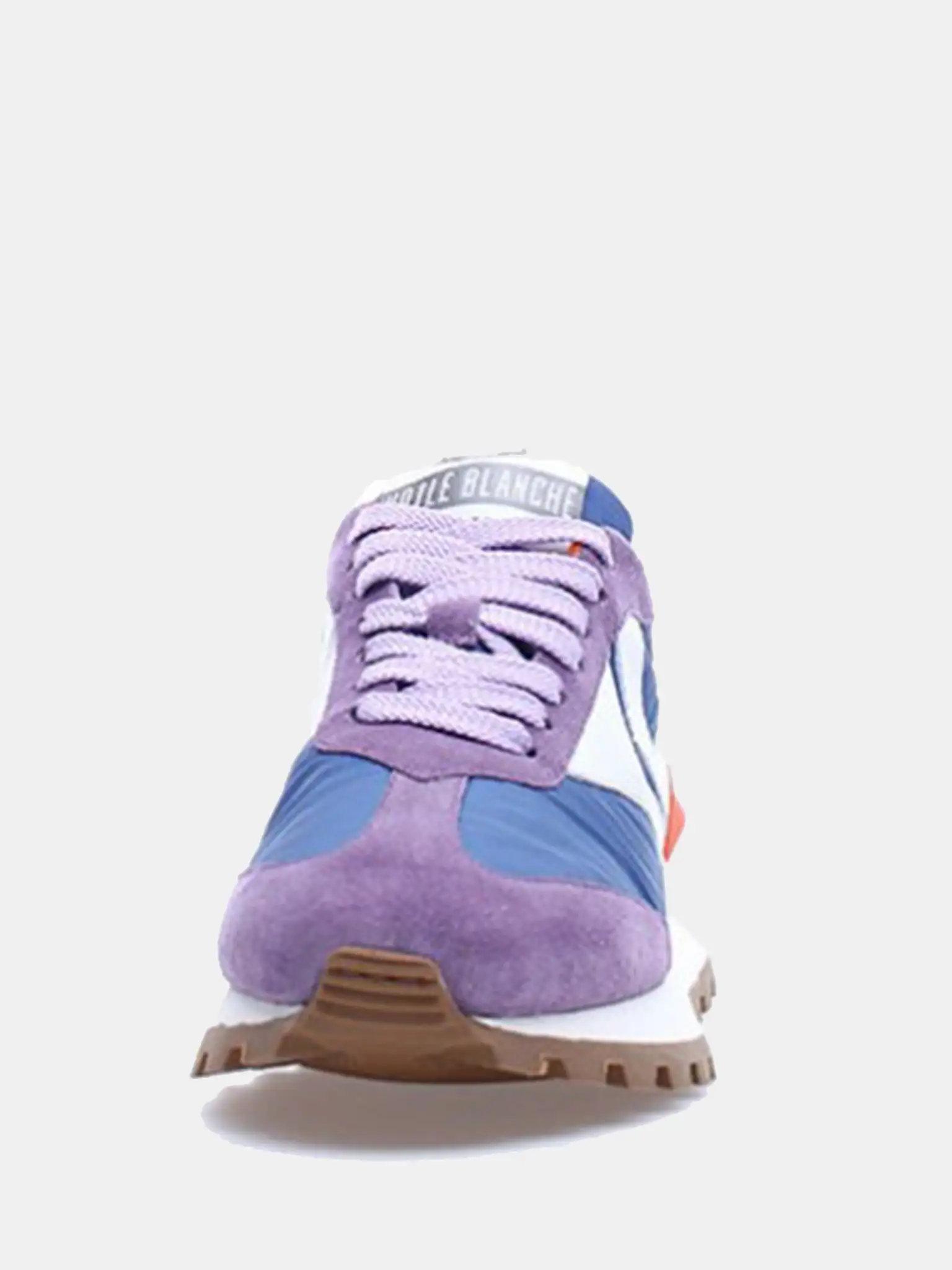 The winter version of the Qwark sneaker model boasts a feminine flair and bold style. The suede and leather insert-embellished technical fabric upper creates an elegant look. The rubber heel stabiliser defines geometric lines and bestows a high-tech touch to the model. Two-tone rubber sole with an indented tread.