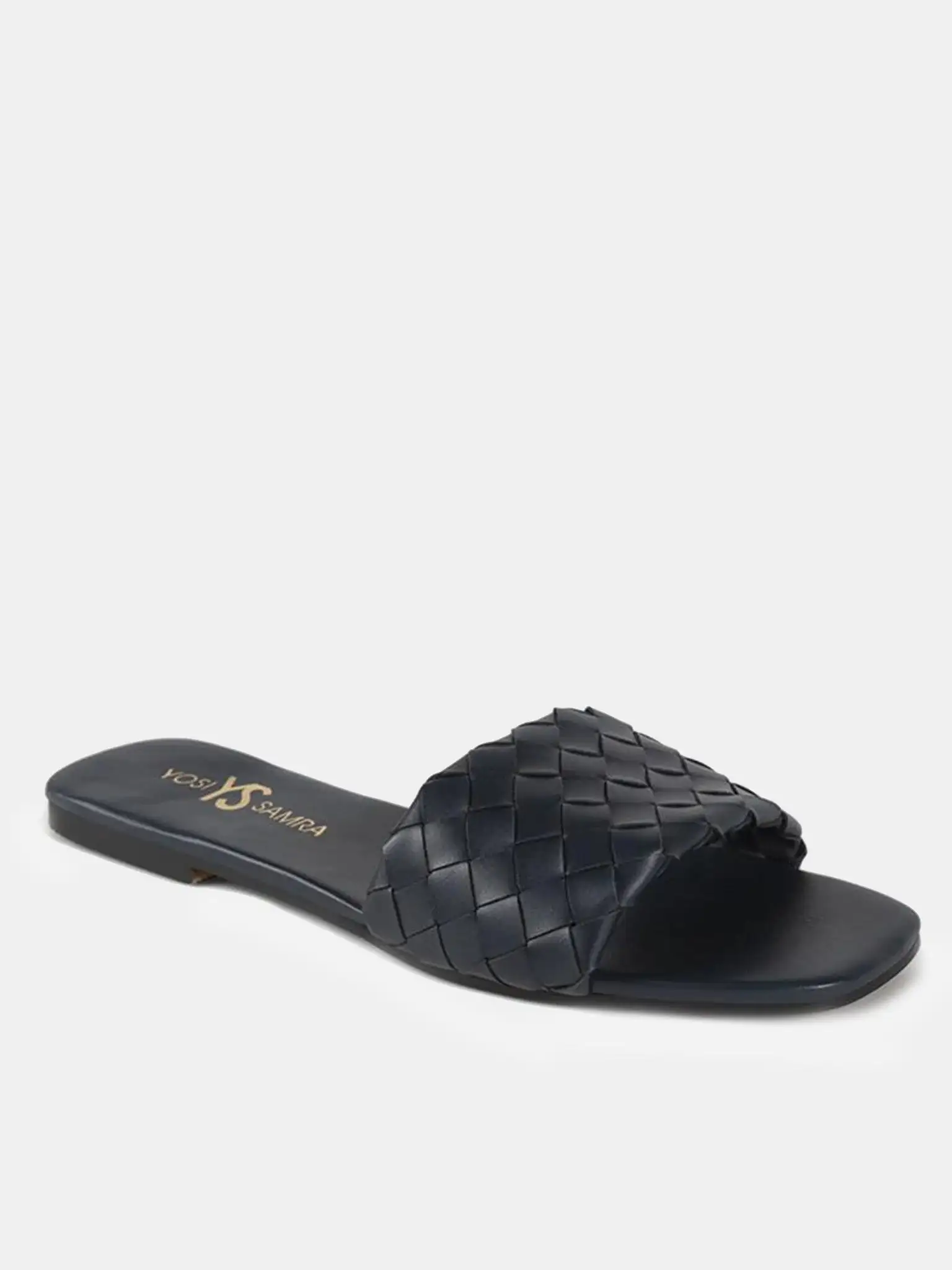 The Yosi Samra Women’s Nathalie Sandal features a Vegan leather woven upper and a streamlined silhouette.